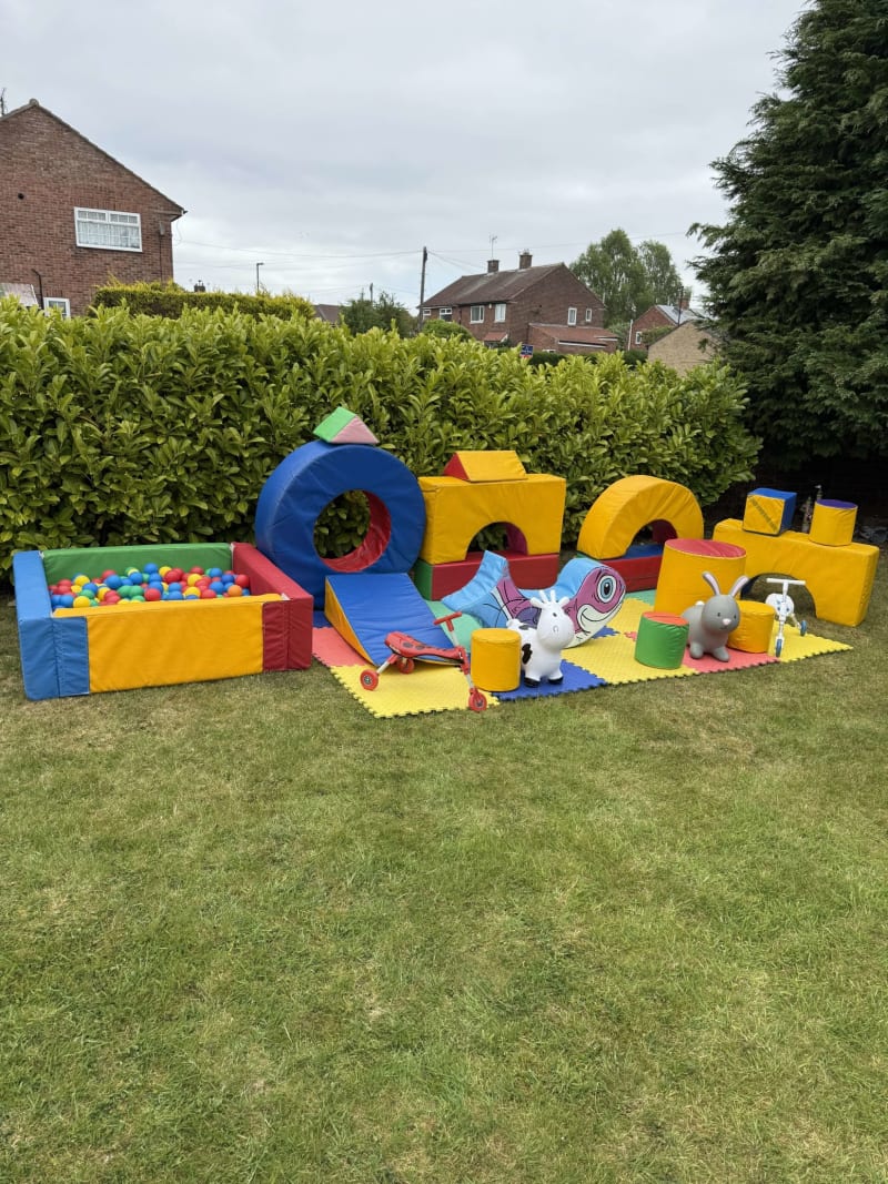 Keep the little ones entertained with our colourful Soft Play Kit - a brilliant add-on to any party or event! This set includes large foam shapes for climbing and building, soft floor tiles for safety, a mini ball pit, and fun ride-on toys for toddlers to zoom around on.